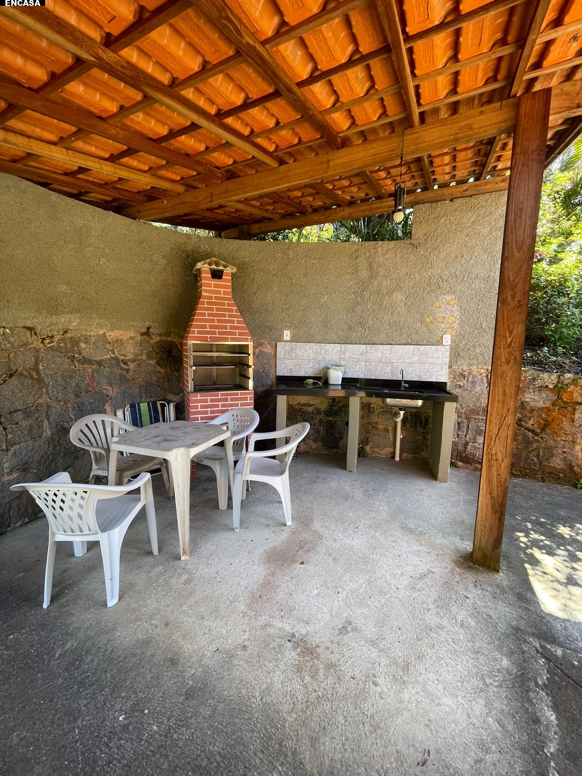 01 Chalé (02 quartos, sala cozinha, banheiro, área de serviço, garagem, churrasqueira). No mesmo terreno uma casa de 01 quarto, sala, cozinha, banheiro e área de serviço.