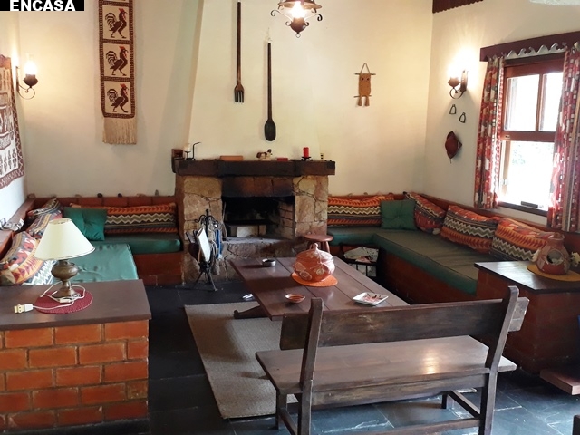 Casa estilo chalé com 2 dormitórios, 2 banheiros, cozinha americana, lareira, varanda com vista panorámica sobre o vale de Stucky, eletrodomésticos de base e mobilia rústica. Área:107 m² - pronto para morar!